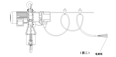 3、吊車3相電源線為紅、白、黑,接地線為綠色。(參考圖二)