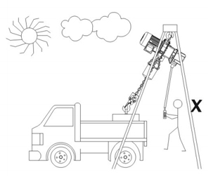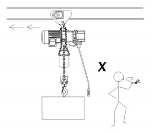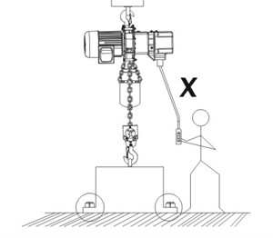 7、操作時(shí)嚴(yán)禁人員在吊運(yùn)物下行走或前進(jìn)方向以及嚴(yán)禁通過(guò)人員上方如下圖: