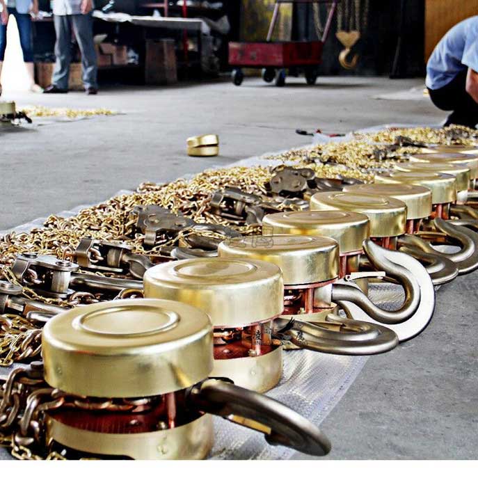 防爆手拉葫蘆中的鏈條、棘爪。防爆手動小車中的齒輪軸、手拉鏈條、車輪輪緣等可能產(chǎn)生碰撞、摩擦火花的零部件,按GB3836.1-2000《爆炸性氣體環(huán)境用電氣設(shè)備通用要求》和GB10686-1989《銅合金工具防爆性能試驗方法》的規(guī)定設(shè)計,保證了使用過程中不會產(chǎn)生碰撞或摩擦火花。防爆手拉葫蘆的應(yīng)用效益如下: