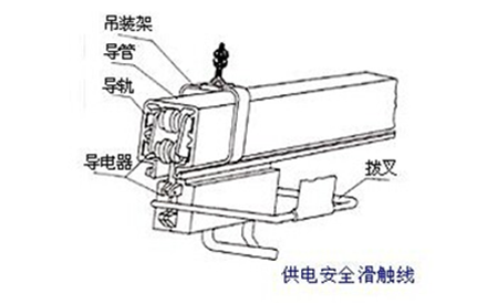 為什么滑觸線能夠在電動葫蘆行業(yè)應用的比較廣泛呢,因為它在運行的時候人體及異物接觸不到導軌,杜絕觸電事故,保證使用安全,特別在各種起重機械得到廣泛的運用。因為場合的不同,電動葫蘆電源線一般要求靈活性高,可以經(jīng)得起彎、折、扭等動作;而安全滑觸線主要是要求場合固定,路線穩(wěn)定,不能亂移動。來說一下電動葫蘆的滑觸線由兩個部件組成的,導管,導電器兩種以及一些其他的部件構成。如下圖所示: