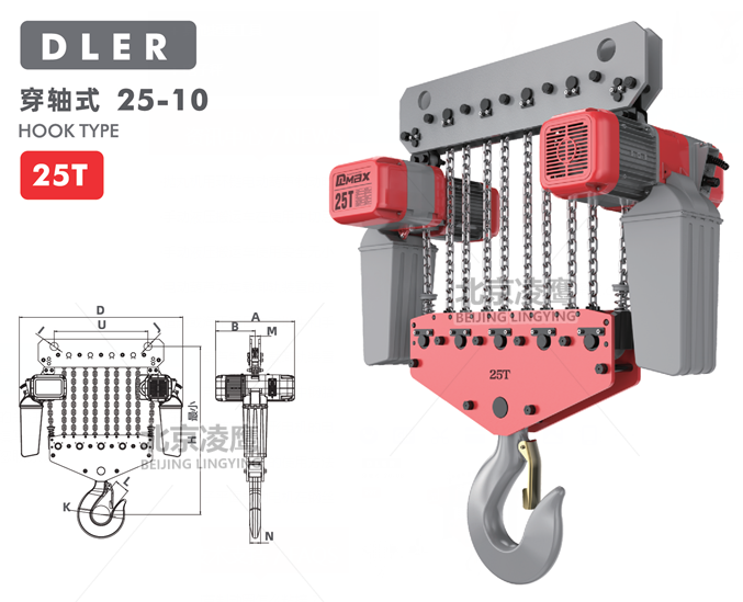 25噸DLER環(huán)鏈電動葫蘆穿軸式上鉤與下鉤超低距離設(shè)計,有效提高空間高度。上下起升配KBK滑軌靈活更輕巧。